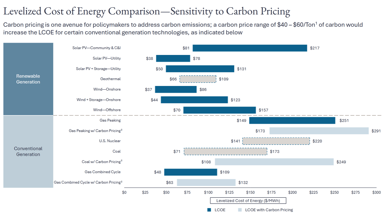 Mit CO₂-Preisen von $40-60/Tonne werden fossile Kraftwerke noch unrealistischer.