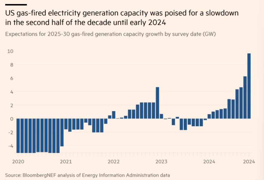 Dieser Chart zeigt die Zubauerwartungen für neue Gaskraftwerke in den USA. Schau auf 2022, dort drehten sich die Erwartungen. ChatGPT debütierte Ende 2022.